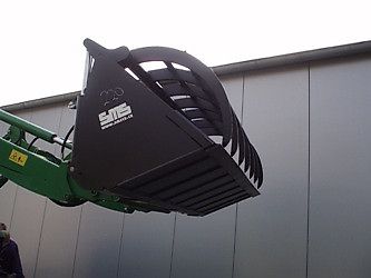 SMS pelikaanbakken. Zeer degelijke bakken met zware hydraulische cylinders en stevige scharnierpunten voor de bovenklem. In diverse breedtes op voorraad. Incl eurokoppeling voor de voorlader ( maar op aanvraag ook met bijv. manitou aankoppeling ), en hydraulic slangen.